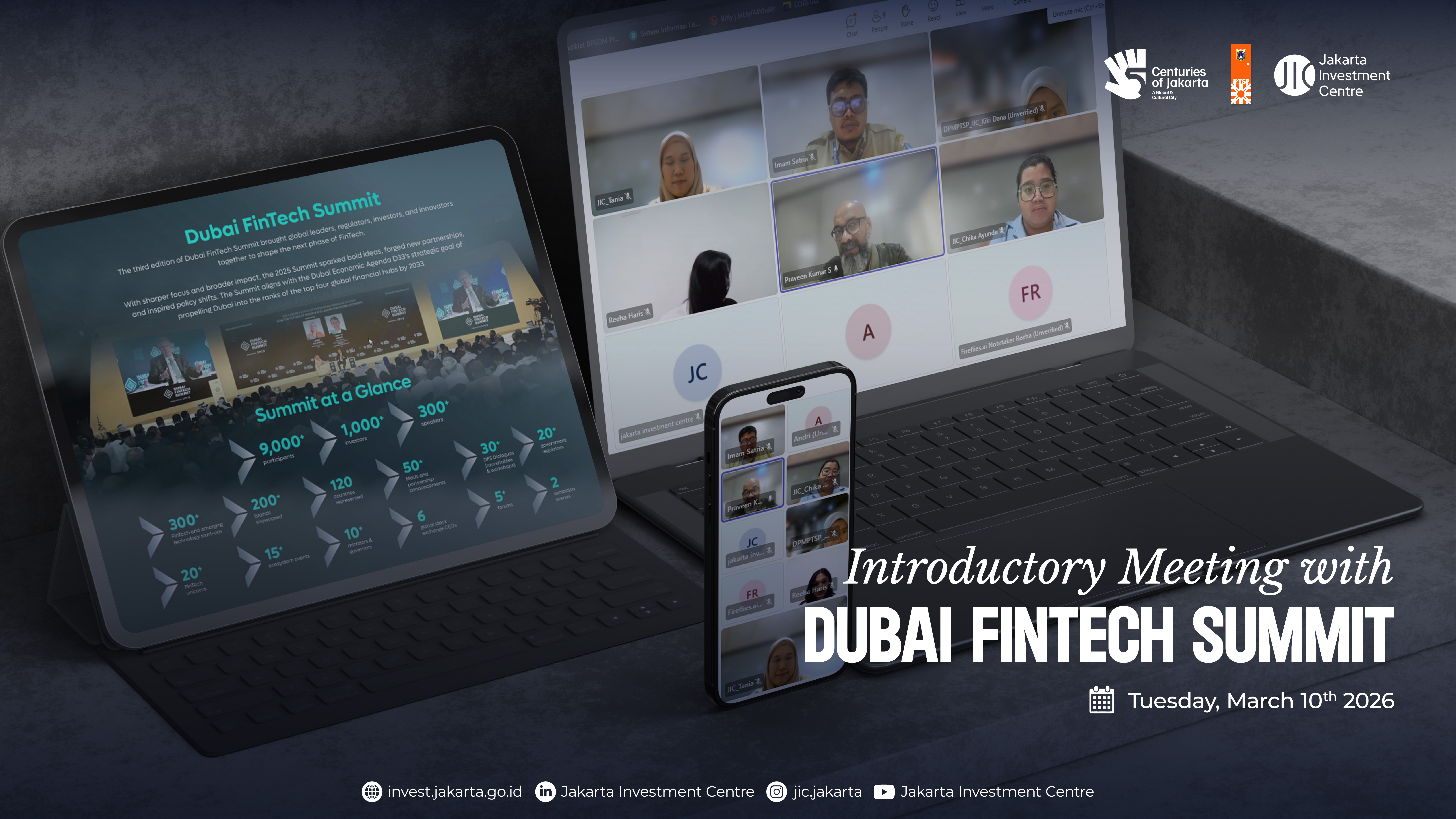 In March, Jakarta Investment Centre (JIC) held a meeting with the Dubai Fintech Summit, an international conference in Dubai that supports the advancement of the financial services sector, by bringing together global industry leaders and experts. The summit features a series of activities, including panel discussions, roundtable sessions, exhibitions, and startup pitch competitions. The meeting aimed to explore potential collaboration opportunities between JIC and the Dubai Fintech Summit.
